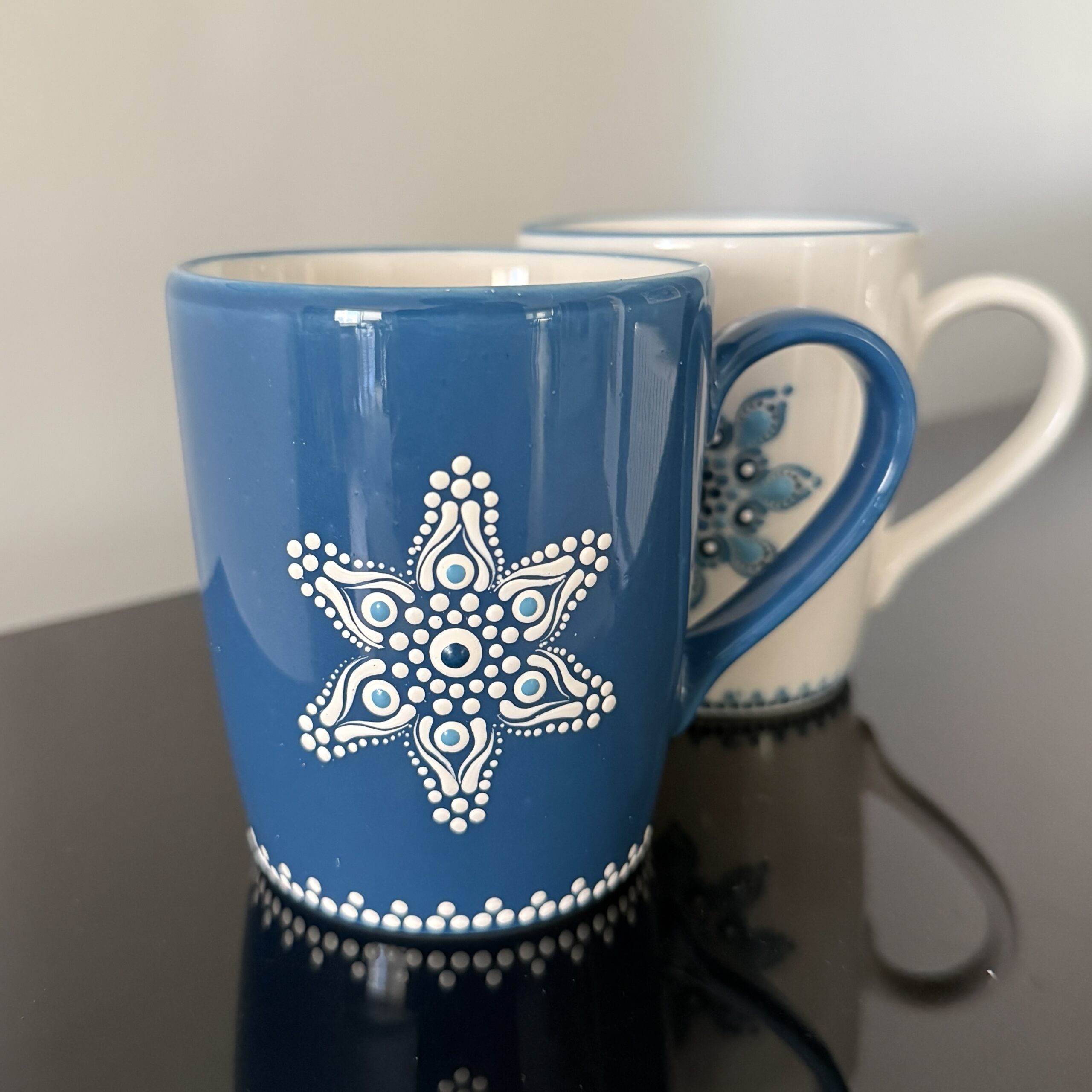 Her iki tarafında mandala desenleri mevcuttur.